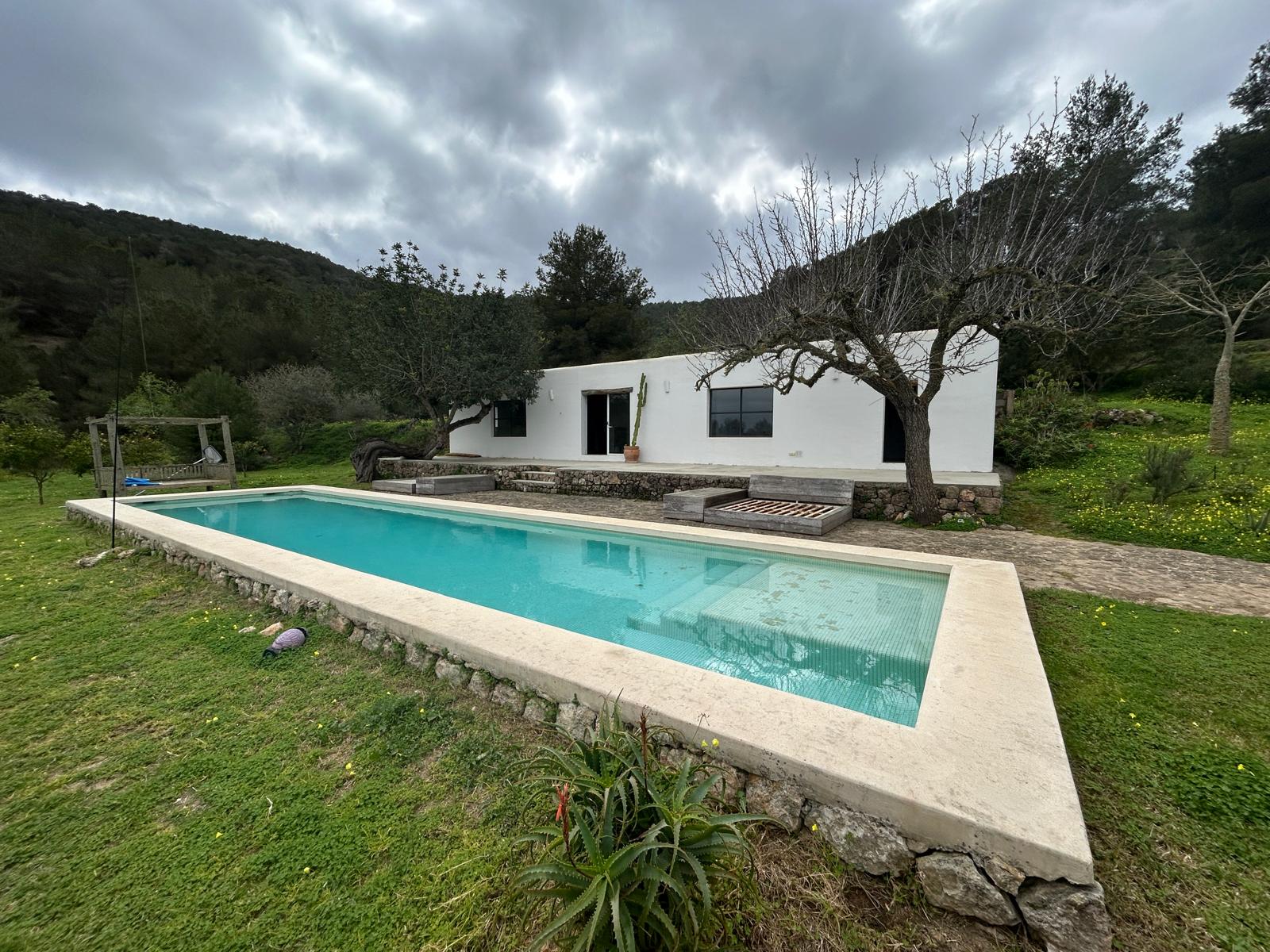 Rehabilitación de casa payesa tradicional, al estilo minimalista, con integración paisajistica. Trabajo realizado en 1991.